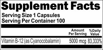 BUY 1 GET 2 FREE B-12 Vitamins 5000mcg 100 or 200 Capsules