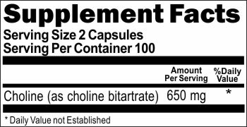 BUY 1 GET 2 FREE Choline Bitartrate 650mg 200 Capsules