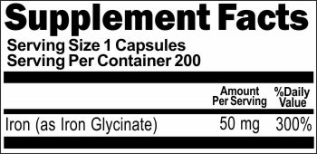 BUY 1 GET 2 FREE Iron Glycinate 50mg 200 Capsules